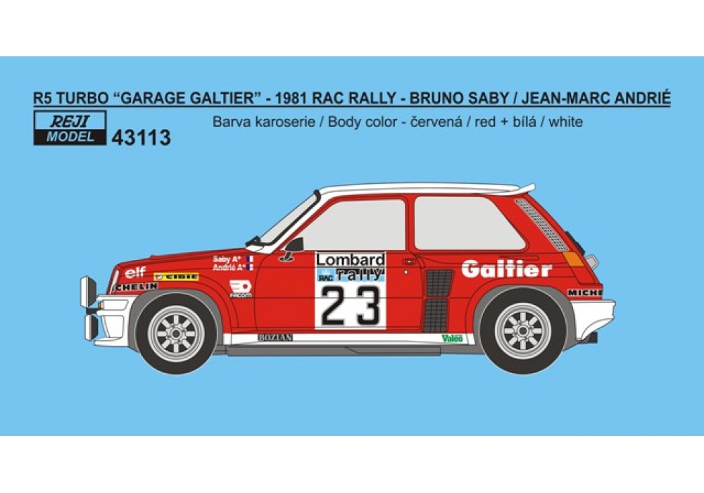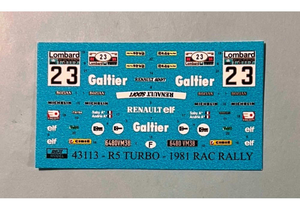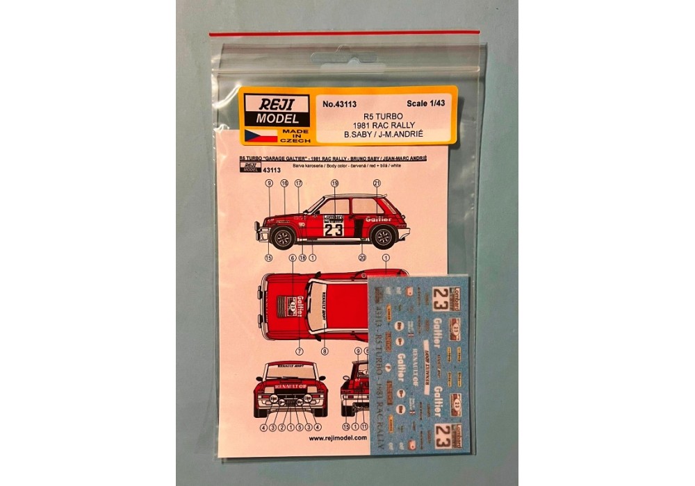 Decal – Renault 5 Turbo - 1981 RAC Rallye - Saby / Andrié 1/43