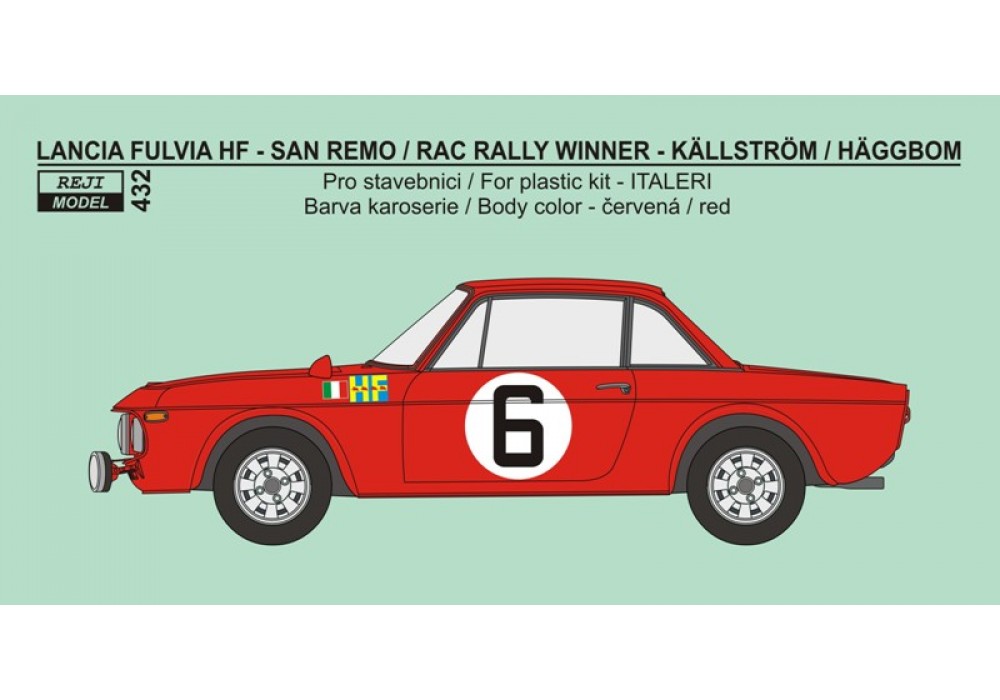 Decal – Lancia Fulvia HF - 1969 San Remo / RAC Rally Winner - Källström / Hägbbom 1/24