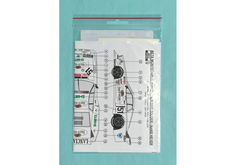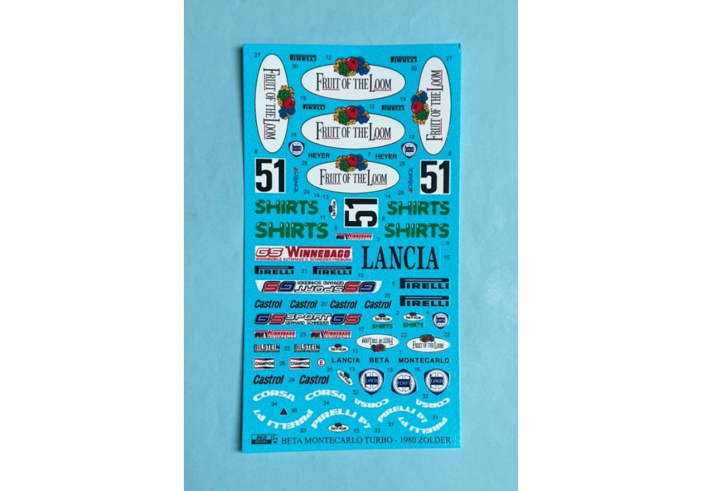 Decal – Lancia Beta Montecarlo Turbo - 1980 DRM Zolder #51 - Heyer 1/24